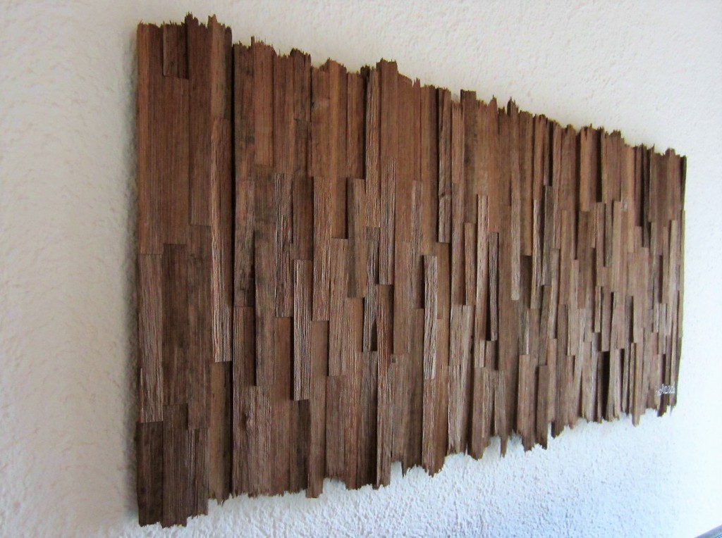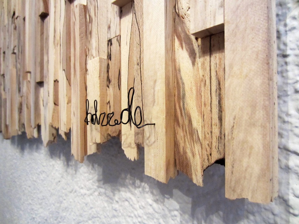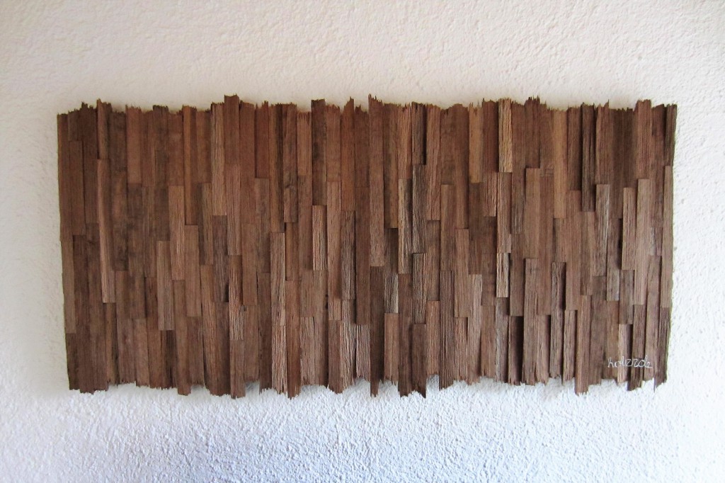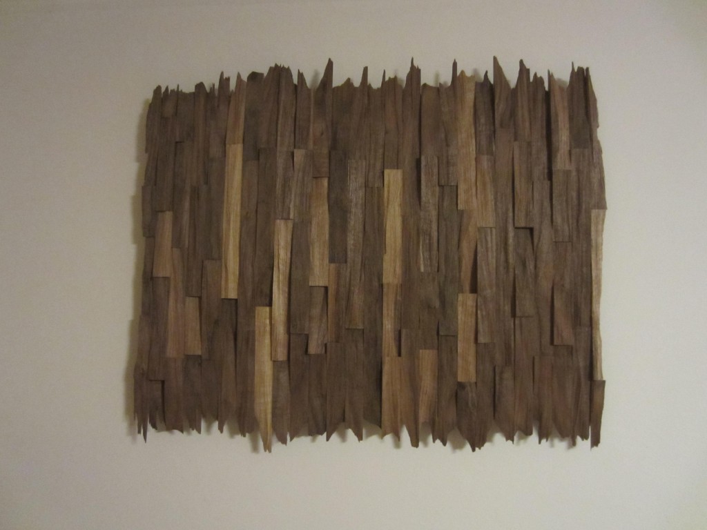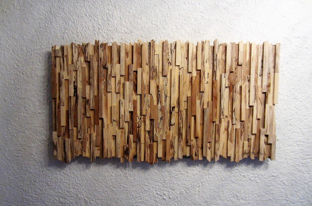 Wandbild in Eiche gespalten. Als Fischgrat verlegt. Umramt mit einem gebrannten Fichtenramen.